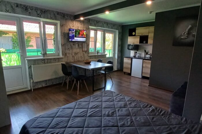 Четырехместный номер категории люкс, расположен на 1 этаже двухэтажного здания. На этаже вход на общую миникухню (на два люкса) и два изолированных люкса. При желании можно снять весь этаж для двух семей или большой компании. В каждом номере: двухспальная кровать, двухспальный раскладной диван, прикроватные тумбочки, шкаф, жк телевизор, кондиционер (сплит), санузел, холодильник, фен. На всей территории wi-fi. Зоны отдыха во дворе. Календарь свободных мест и цены по месяцам⇓